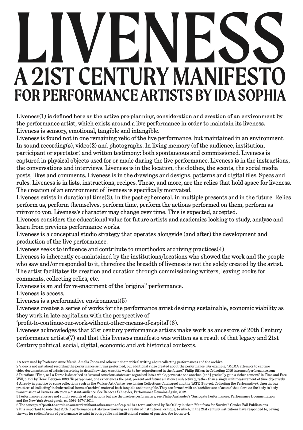 LIVENESS: A 21st Century Manifesto for Performance Artists