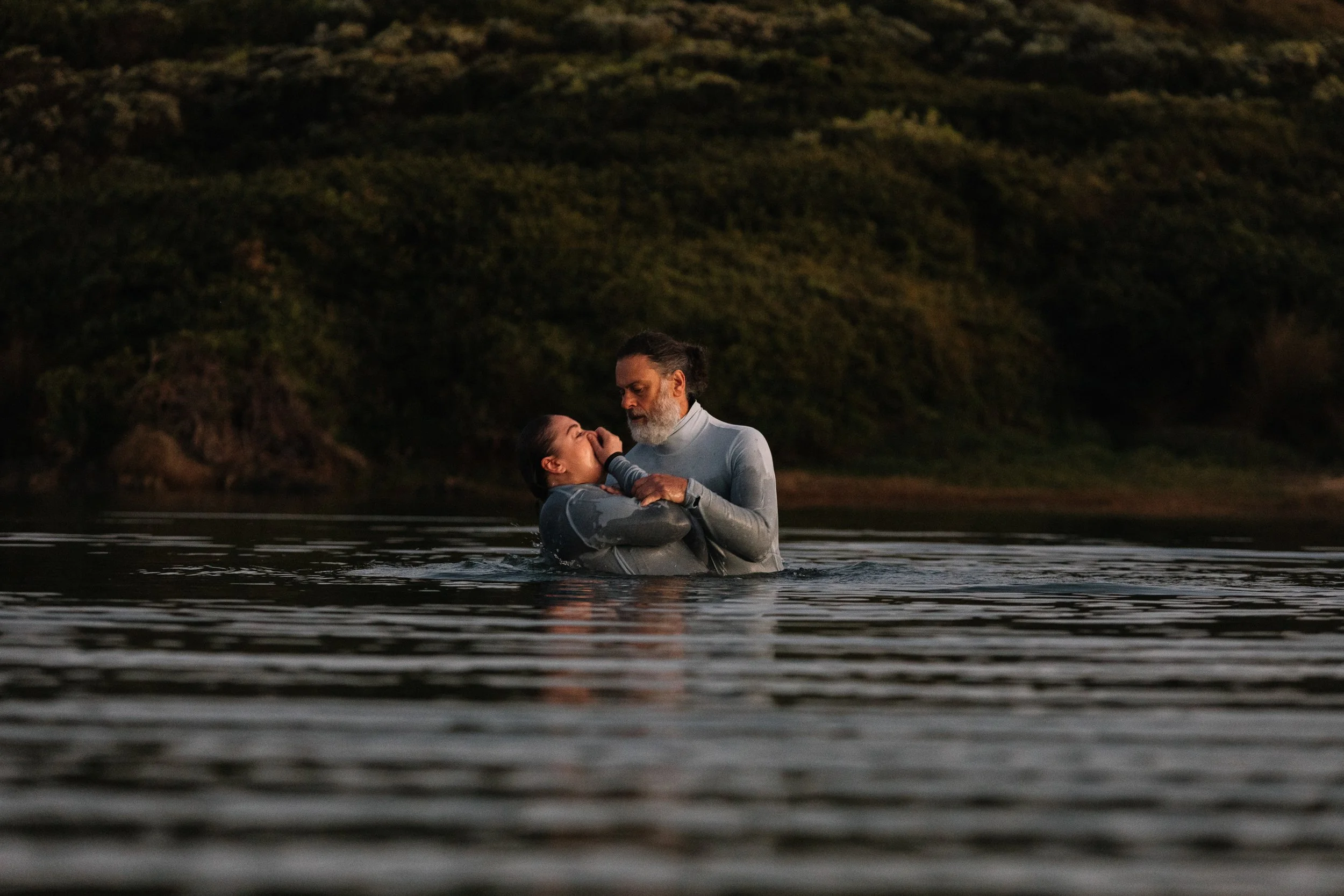 Witness was performed at The Pool of Siloam in Beachport, South Australia. A place where Ida Sophia learnt to swim, it also features in the Bible. Christ takes a blind man into the Pool of Siloam, miraculously restoring his sight. Located the performance there underscores the futile attempt to ‘see’ God. Collaborating artist, Michael Schaefer’s gaze intentionally looks out, a device used to make the witnessing viewer feel witnessed. The sampled and synthesiser sound composition builds with the action, commanding a firm and unrelenting grip that verges on madness.